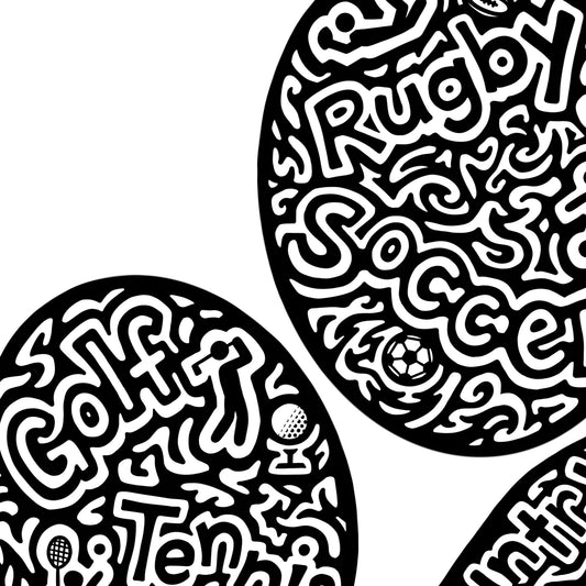 In this collection you will find all of my hand drawn tshirts designs that have hidden words, and sometimes hidden pictures, inside of the main shape or logo. Some words are very easy to see while others are harder to read. So from afar, looks like you are wearing something basic, but up close, your eyes start to notice all the detailed artwork. These designs take anywhere between 10-30 hours to draw on average!
