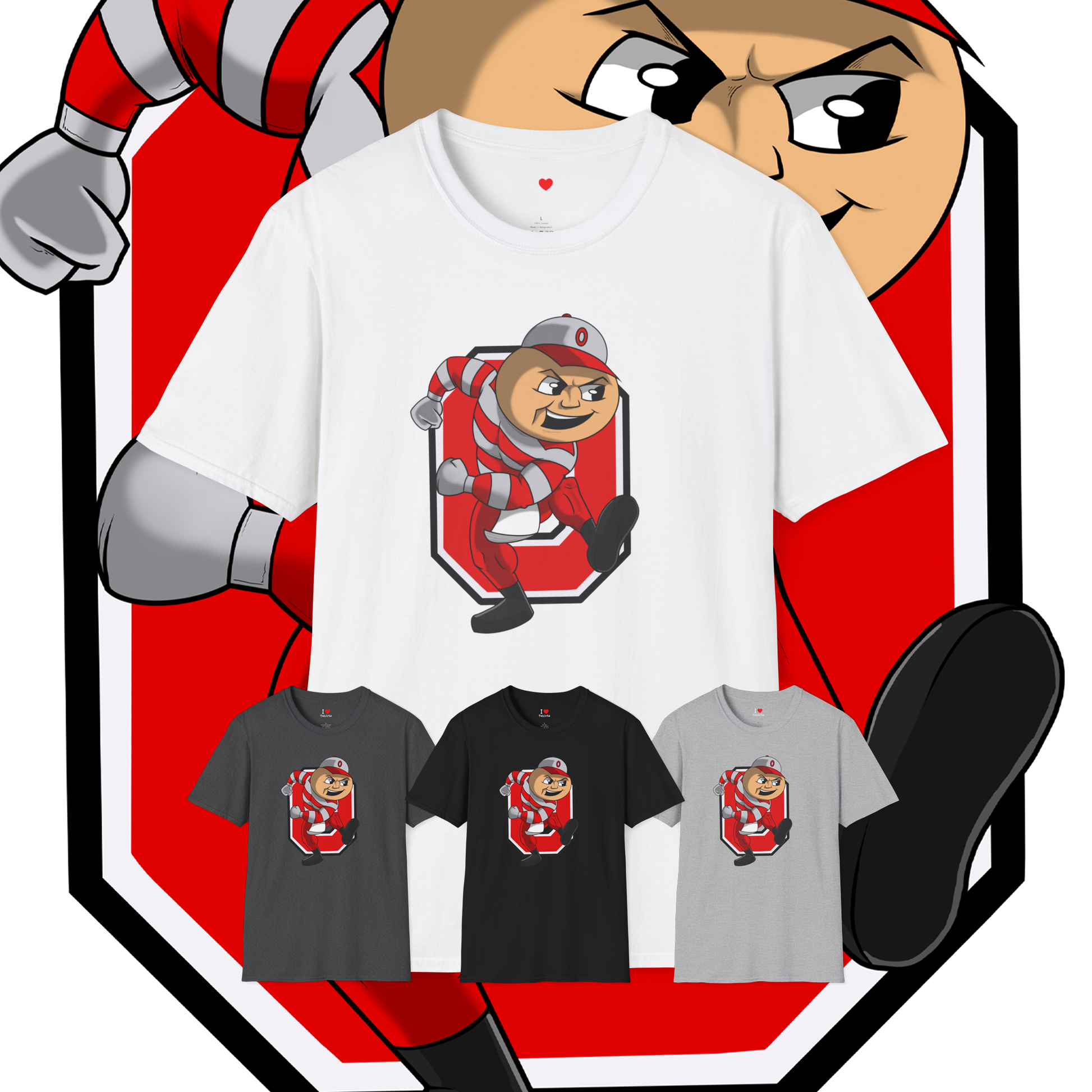 This is a hand-drawn design done by Scott Sketches featuring the Ohio State mascot in front of the Buckeye "O".