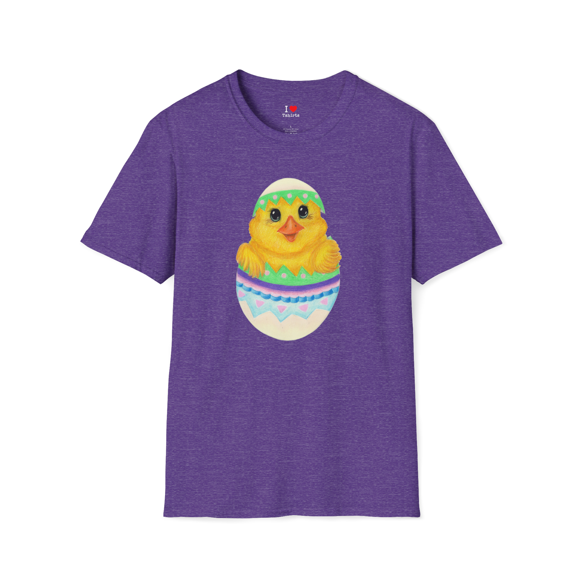 This is a colored pencil drawing done by my mom, Amy. It is a cute lil chick breaking out of an Easter egg. Available on many colors and youth sizes.