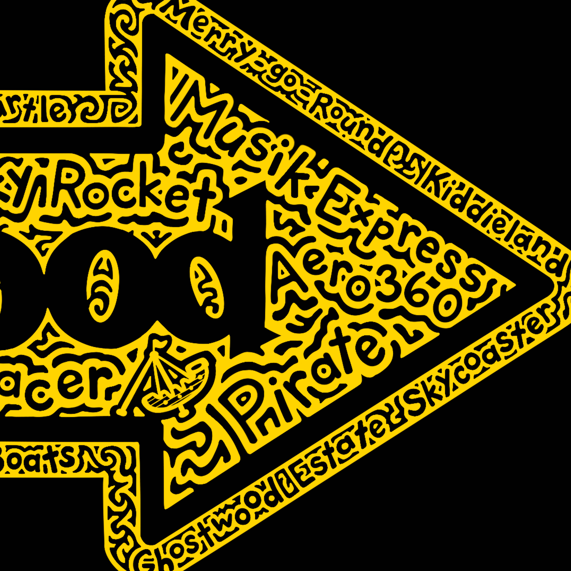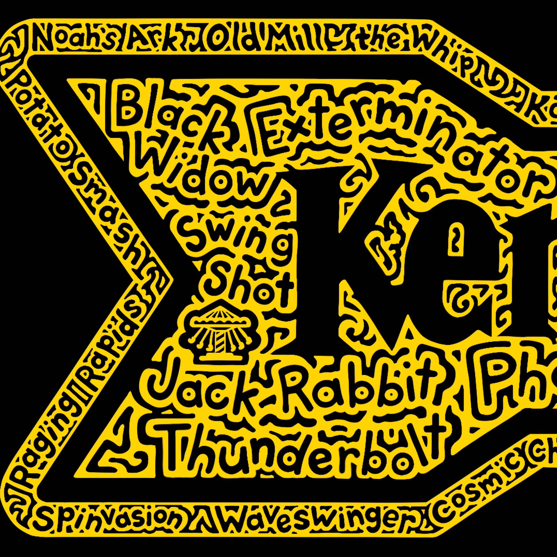 This is a hand-drawn hidden wordart Kennywood logo. Inside the arrow shape are the names of the rides and areas at Kennywood Amusement Park in Pittsburgh Pennsylvania. There are 30 hidden words and 5 hidden pictures inside the doodle pattern.