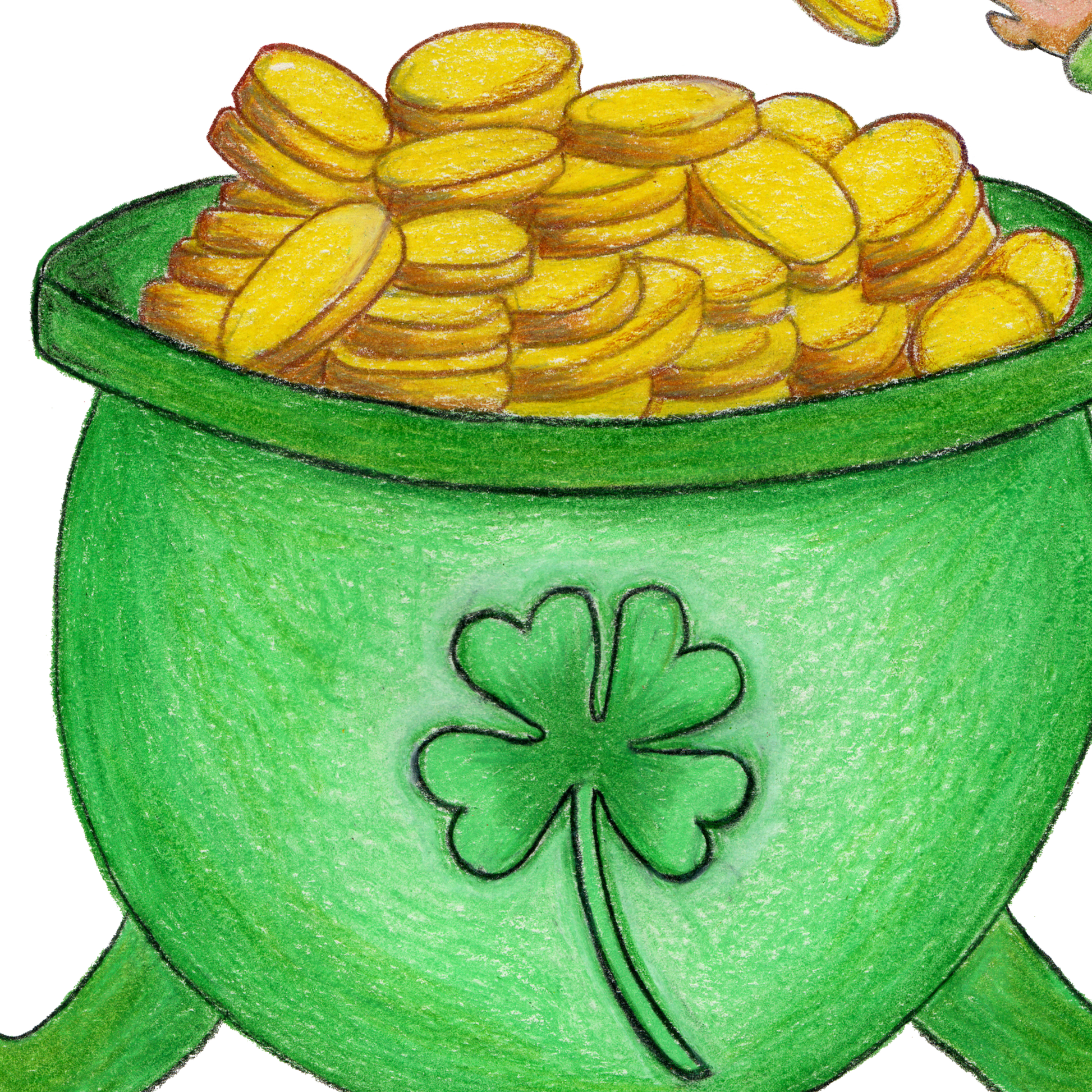 This excited leprechaun just found the pot of gold! This is a hand-drawn design by Amy using colored pencils. This tshirt is perfect for St. Paddy's Day for both kids and adults.