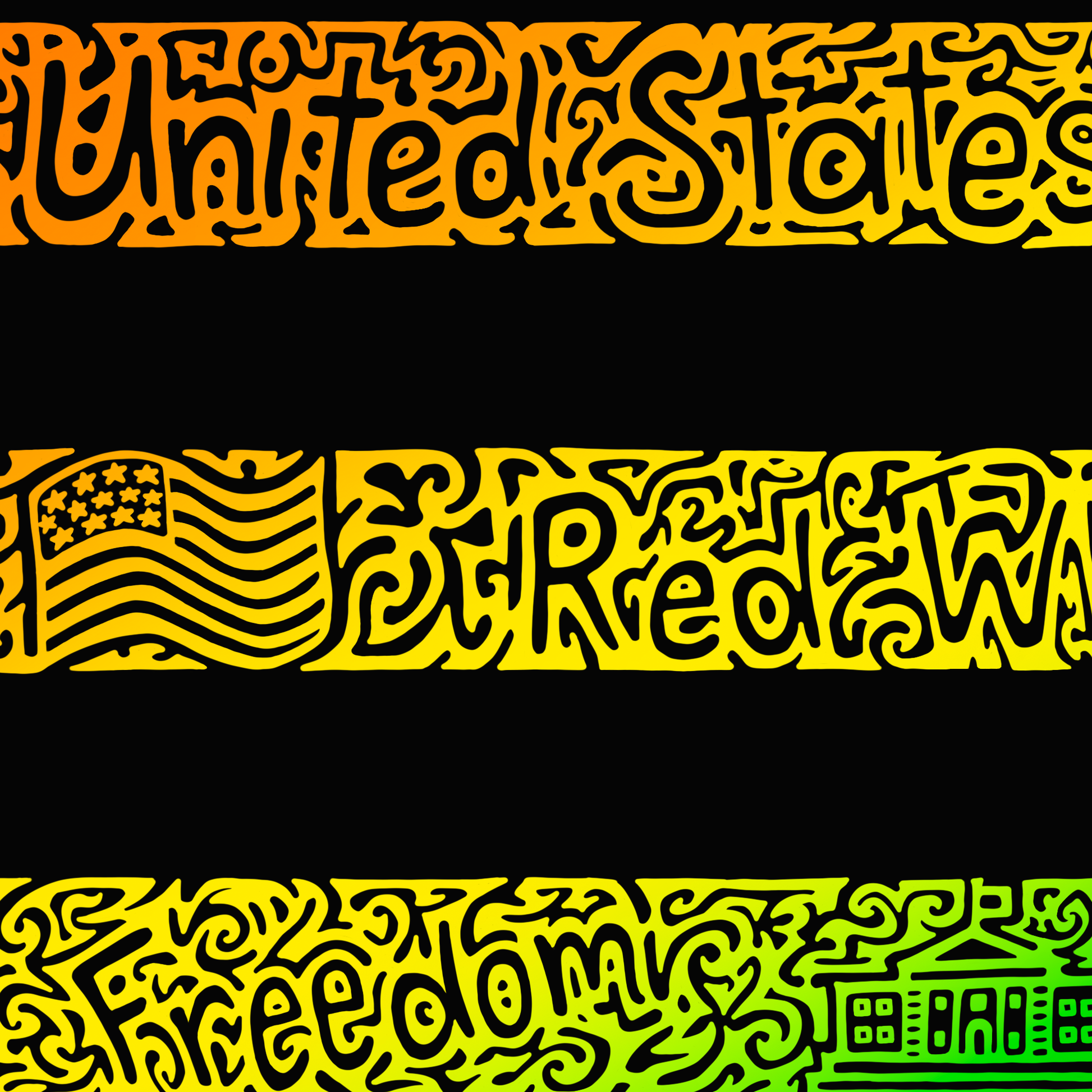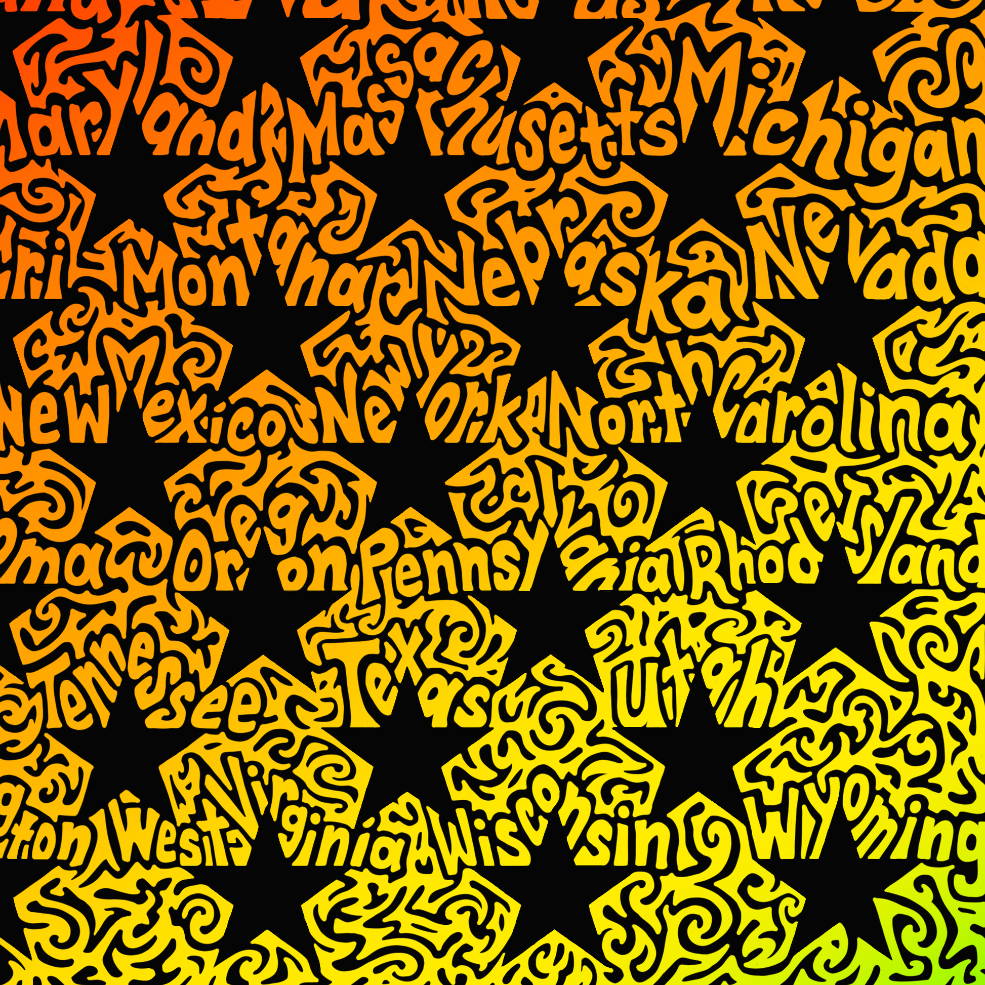 This is a hand drawn American Flag that took 39 and a half hours to draw. It has all 50 states in alphabetical order on top of each of the 50 stars. It also has 16 other hidden words or phrases inside of the doodles that are associated with our great nation. See if you can find all the little hidden pictures as well!