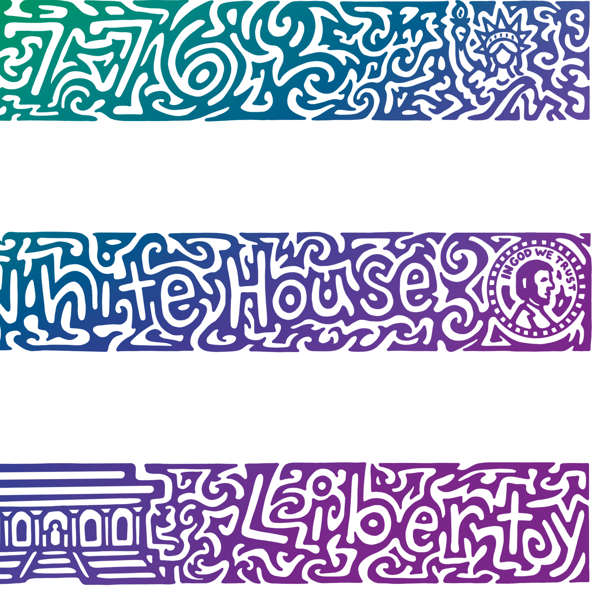 Pictures hidden inside: eagle, us flag with 13 stars, the white house, liberty bell, rattlesnake, statue of liberty, declaration of independence, a penny, uncle sam's top hat, one dollar bill, lincoln memorial