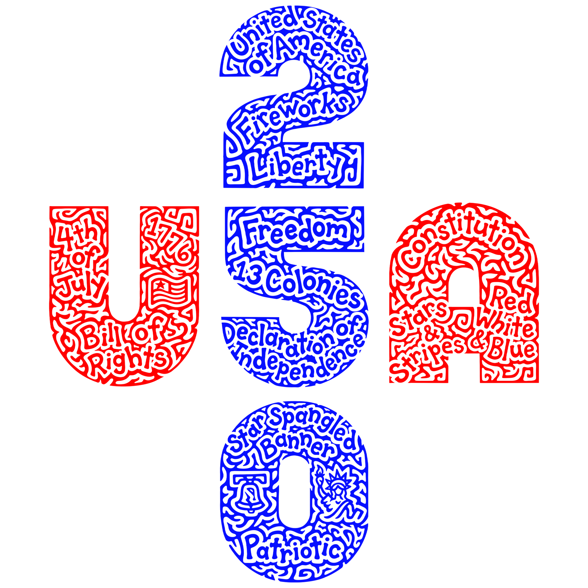 This is a hand-drawn hidden wordart design that I drew to celebrate the nation's 250 years! This is such an exciting time for our country that I felt the occasion deserved it's own tshirt design! Inside the design with the letters USA overlapping with the number 250, there are 14 hidden words/phrases and 3 hidden pictures.